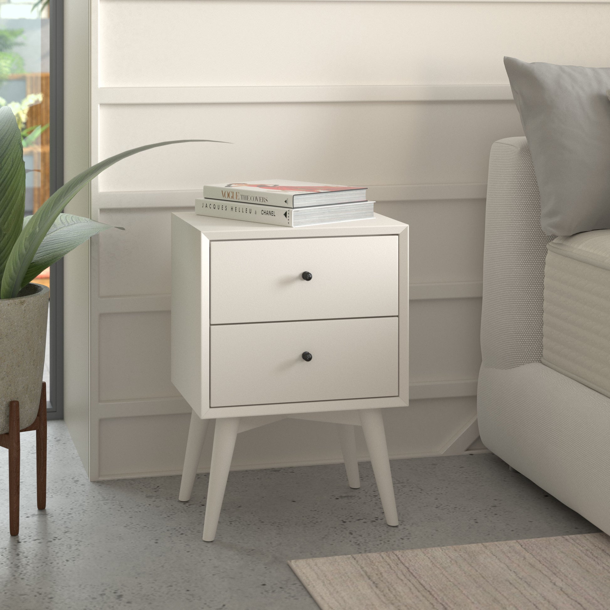 Flynn Mid Century Modern 2 Drawer Nightstand, White