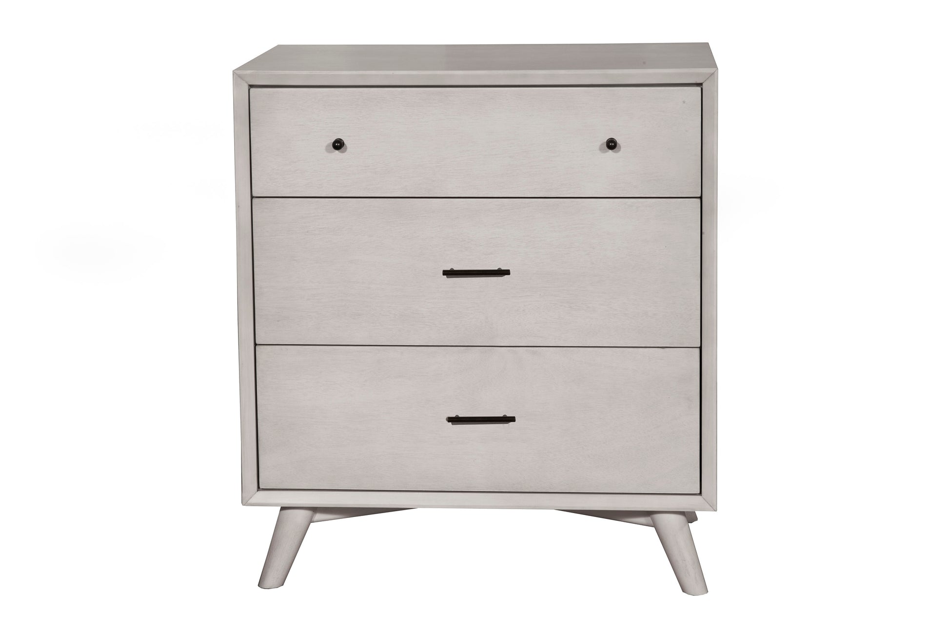 The Flynn collection features the classic lines of Mid-Century Modern furniture that never goes out of style. Its sturdy frames are built to last, constructed of sustainably sourced solid Mahogany to ensure a lifetime of use. The Flynn Accent Chest has three drawers to accommodate most extra storage needs. The dresser comes fully assembled, and is constructed with ball bearing metal drawer glides and French & English dovetail drawer construction. The Flynn bedroom makes it easy to create a cohesive decorating style or mix and match for a more personalized look. Coordinates with other pieces in multiple finish options as part of the Alpine Furniture Flynn collection sold separately.
