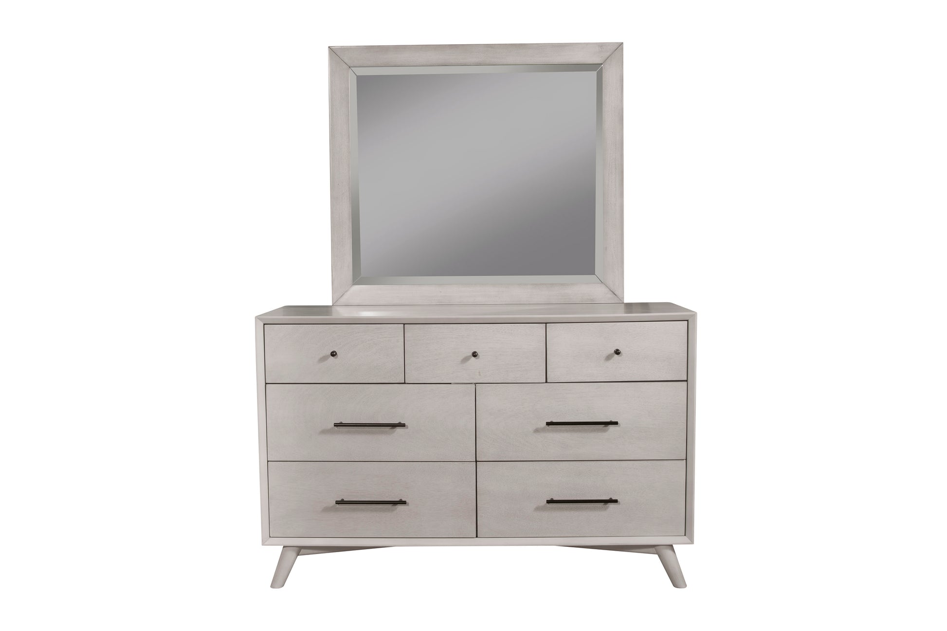 The Flynn collection features the classic lines of Mid-Century Modern furniture that never goes out of style. Its sturdy frames are built to last, constructed of sustainably sourced solid Mahogany to ensure a lifetime of use. The Flynn dresser has seven drawers to accommodate most bedroom necessities. The dresser comes fully assembled, and is constructed with ball bearing metal drawer glides and French & English dovetail drawer construction. The Flynn bedroom makes it easy to create a cohesive decorating style or mix and match for a more personalized look. Coordinates with other pieces in multiple finish options as part of the Alpine Furniture Flynn collection sold separately.