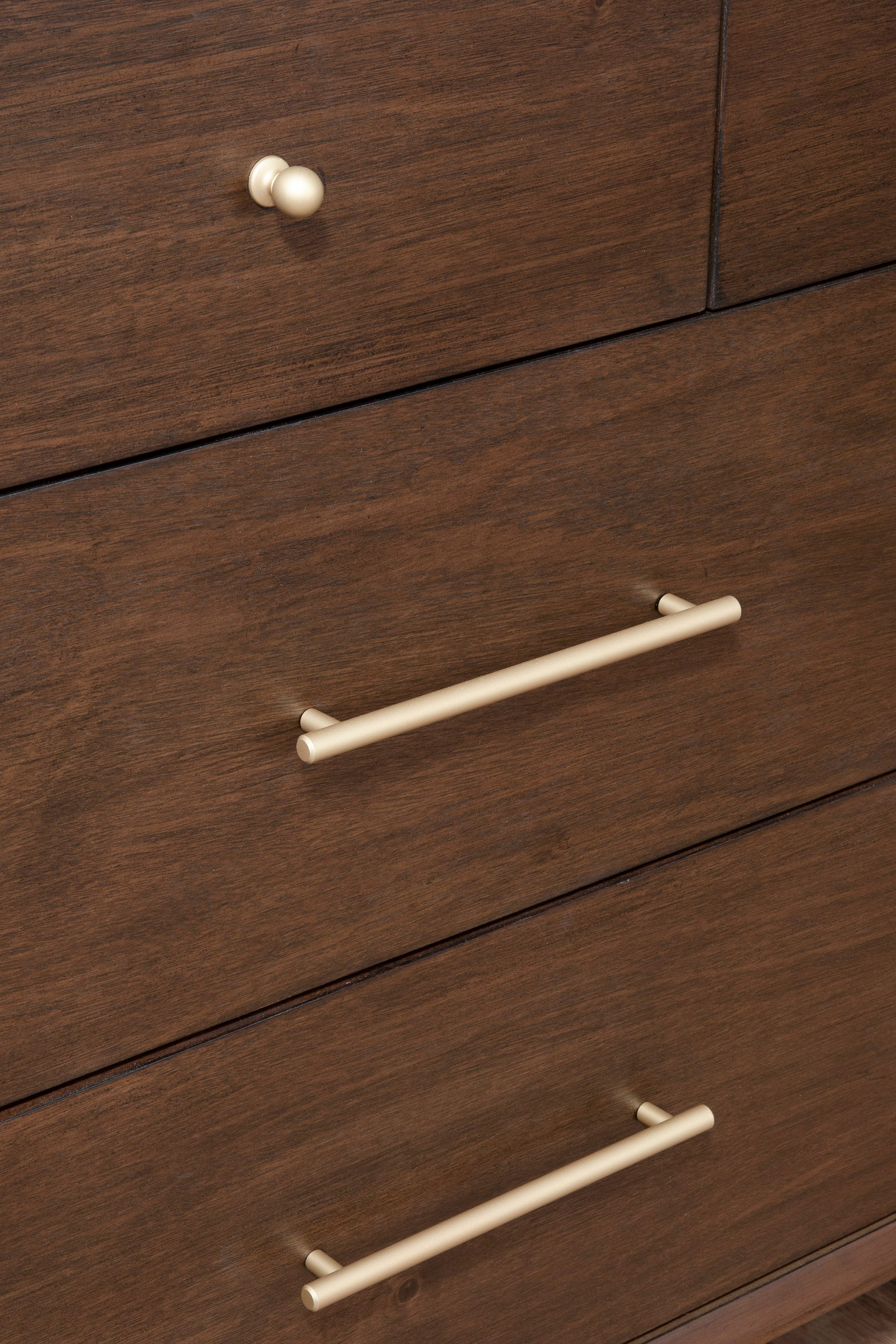 The Flynn collection features the classic lines of Mid-Century Modern furniture that never goes out of style. Its sturdy frames are built to last, constructed of sustainably sourced solid Mahogany to ensure a lifetime of use. The Flynn dresser has seven drawers to accommodate most bedroom necessities. The dresser comes fully assembled, and is constructed with ball bearing metal drawer glides and French & English dovetail drawer construction. The Flynn bedroom makes it easy to create a cohesive decorating style or mix and match for a more personalized look. Coordinates with other pieces in multiple finish options as part of the Alpine Furniture Flynn collection sold separately.