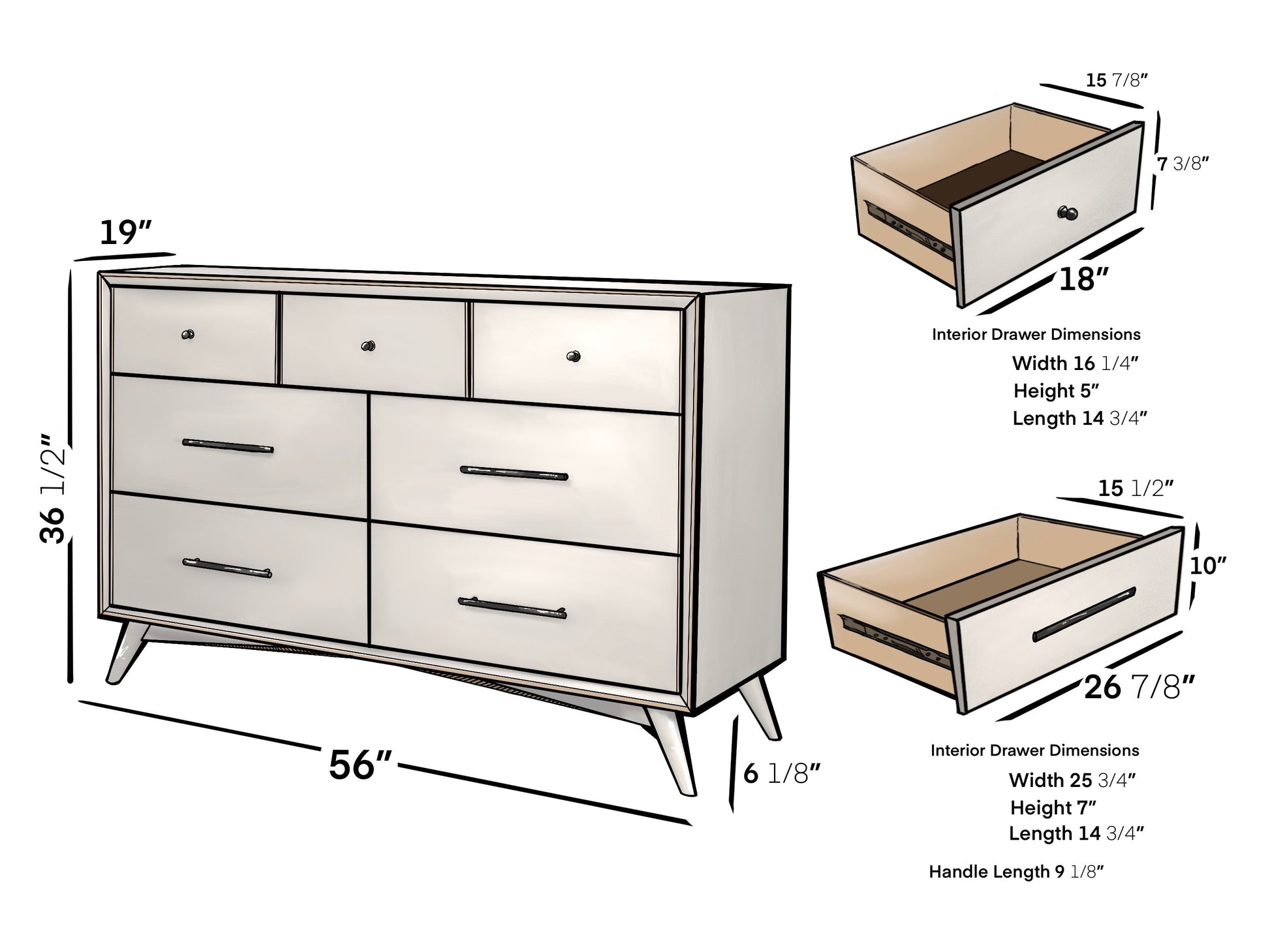 Flynn Mid Century Modern 7 Drawer Dresser, White