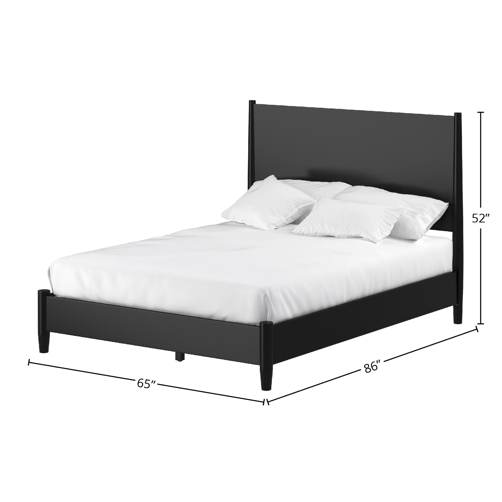 Flynn Mid Century Modern Queen Panel Bed, Black