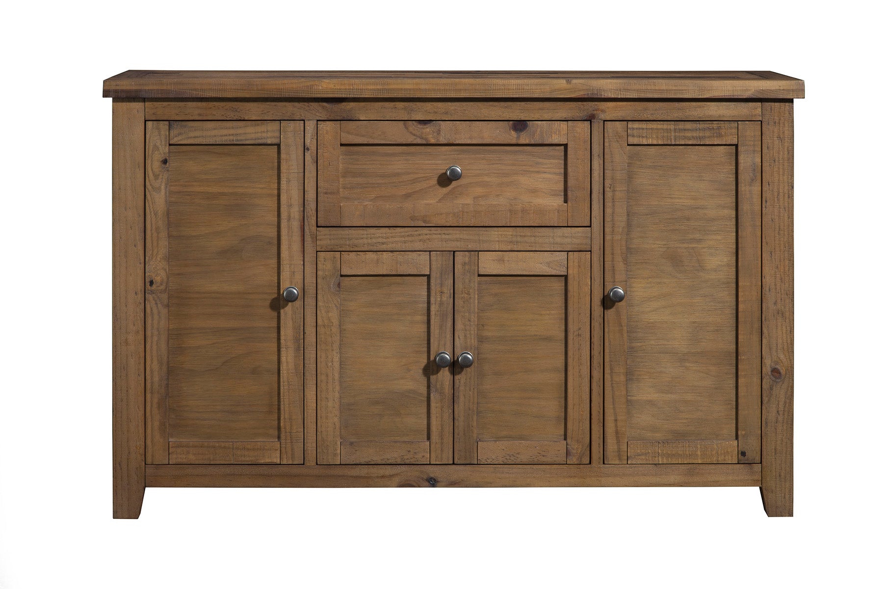 The Kensington wood dining server is crafted from solid pine wood. The server showcases a 1 drawer and 4 doors with areas for storage.