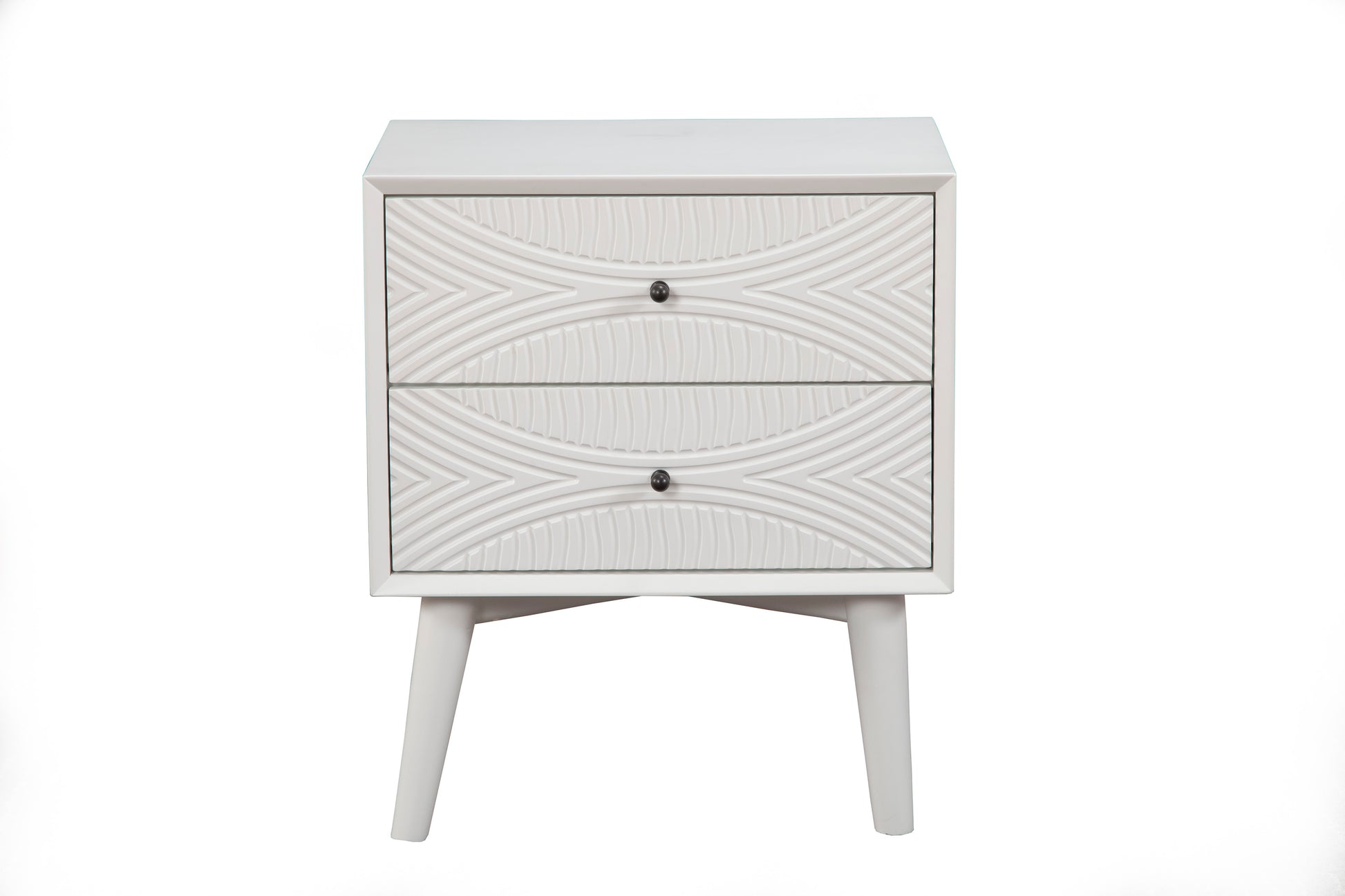 Classic White finish. Quality crafted with Mahogany Wood Solids & Veneer. Fully assembled. French & English Dovetail drawer construction. Felt lined top drawer(s). Ball bearing metal drawer glides. 2 drawers for bedside storage. Alpine Furniture knows that certain things never go out of style. Their furniture products are designed and constructed with classic English and/or French dovetailing that provides a sturdy result and an unbeatable aesthetic. For over 20 years, Alpine has provided its customers with a variety of wood products for the bedroom, dining room, and living room. Each piece is designed to meet the highest-quality standards of design, durability, and dependability. Customer satisfaction is of the utmost importance to Alpine. They have altered their designs over the years based on customer input in order to attain excellence in all areas.