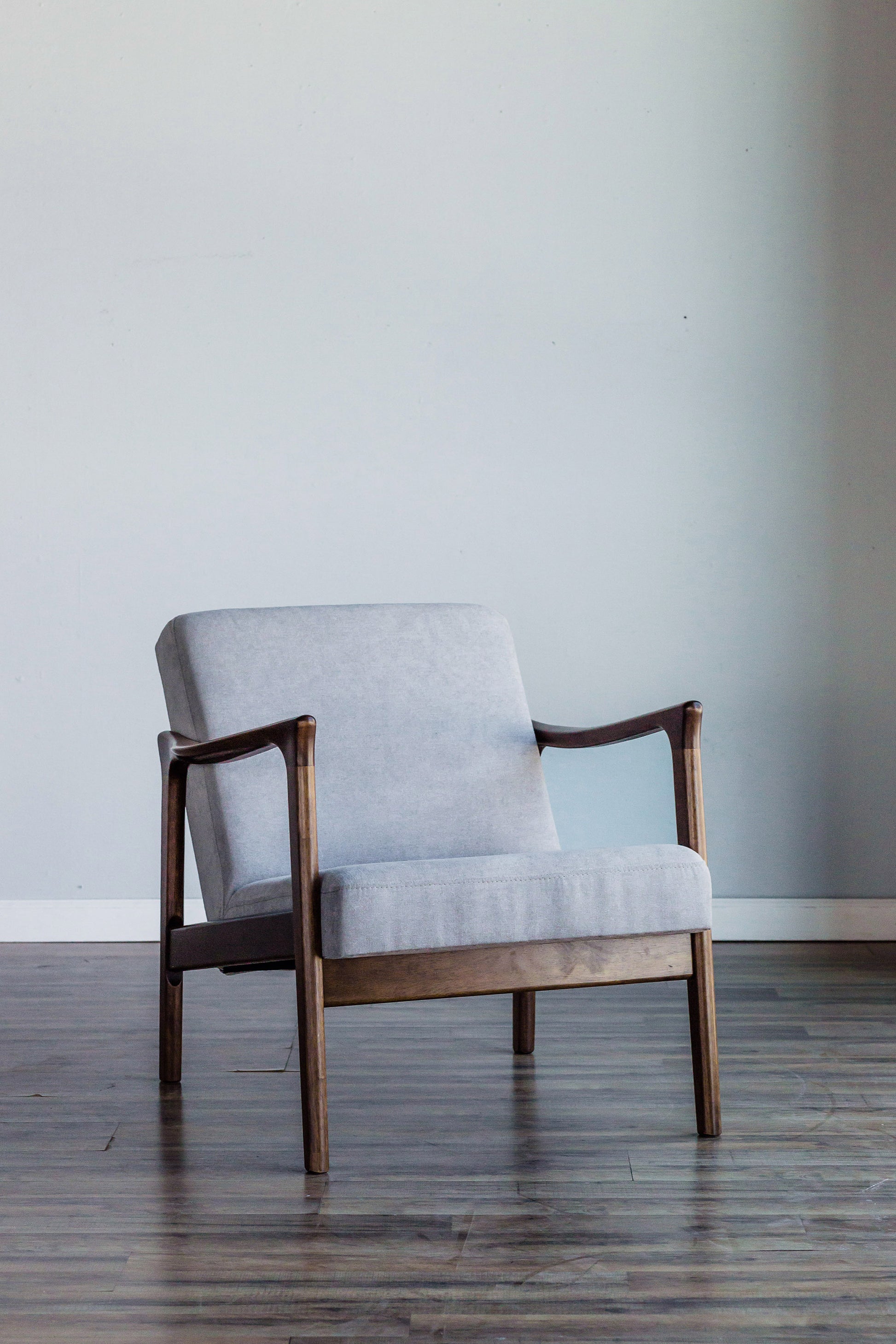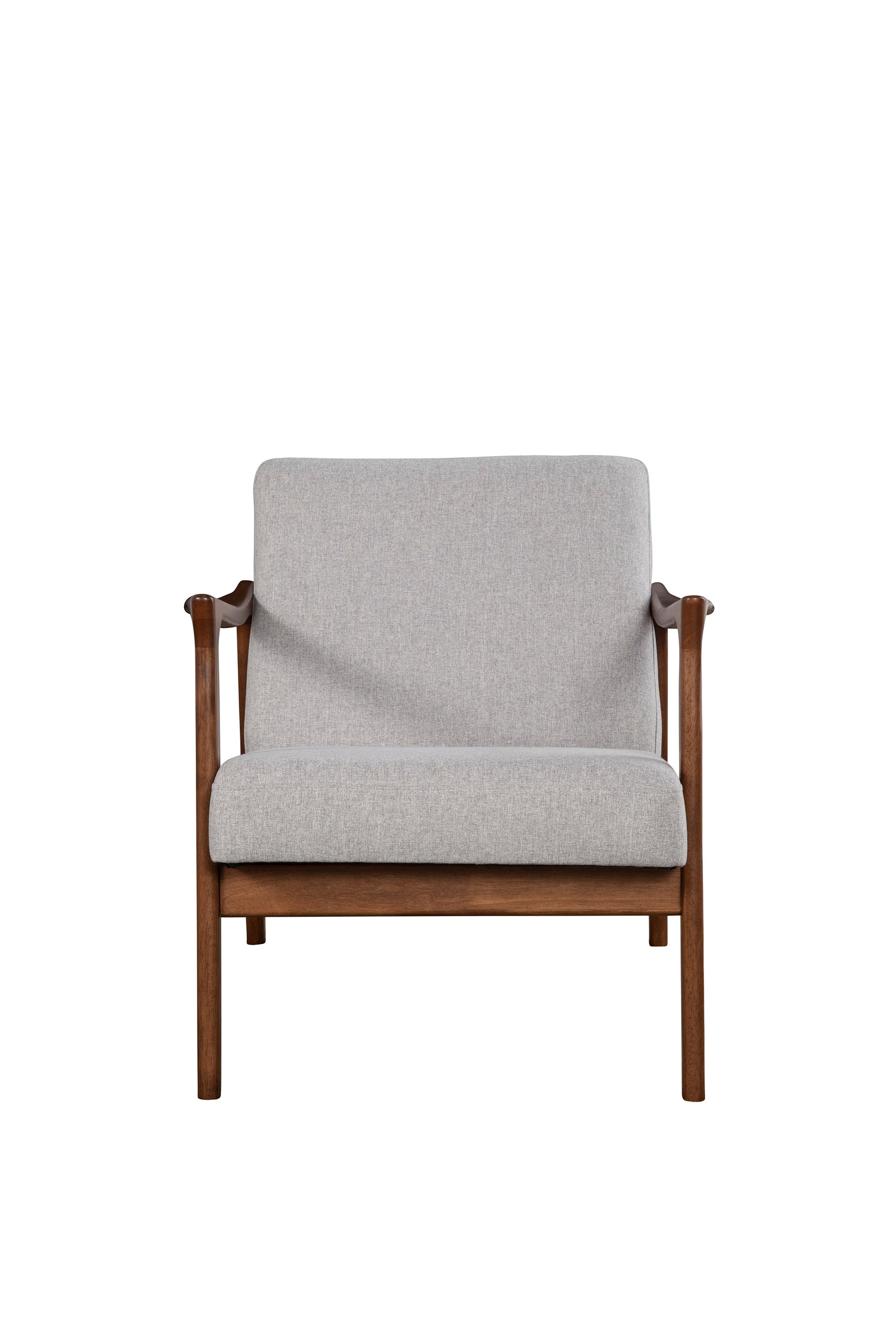 The Zephyr Slate Lounge chair features a solid wood frame. Its comfortable foam padded seat and durable Light Gray fabric upholstery makes it perfect for leaning into a boisterous conversation or reading your favorite book. Add the matching footrest and quietly contemplating your next move. With a warm Medium Brown finish, the chair accents any room setting.